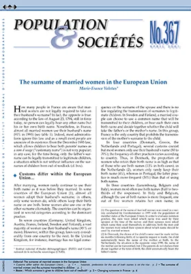 How many people in france are aware that married women are not legally required to take on their husband's surname ? in fact, the opposite is true: according to the law of August 23, 1794, still in force today, no person can legally bear any other name but his or her own birth name. Nonetheless, in France, almost all married women use their husband's name.