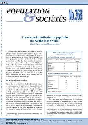 Demographic and economic statistics are usually published for each country separately; this practice, however, restricts their significance. Of course, there is nothing untrue in stating that the world’s five most populated countries contain half the world’s population, or that the five wealthiest countries account for about 60% of the world’s GNP (see table 1). Yet, if countries were replaced by continental expanses or economic unions such as the European Union (EU), the North American Free Trade Association (NAFTA), etc., the resulting picture would be quite different. Thus, in 1997, the EU’s global GNP (1) exceeded that of the United States (8,598 and