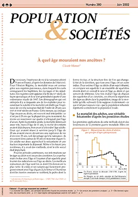 De nos jours, l'espérance de vie à la naissance atteint 79 ans en France, d'après les données de l'état civil. Pour l'Ancien Régime, la mortalité nous est connue grâce aux registres paroissiaux, dans lesquels les curés consignaient les baptêmes, les mariages et les sépultures. Ces registres sont apparus à la fin du XVe siècle, de façon sporadique, et ils se sont généralisés à partir d'une ordonnance royale de 1667. Les démographes qui ont entrepris il y a cinquante ans de les exploiter pour reconstituer la natalité et la mortalité ont établi que l'espérance de vie à la naissance était de l'ordre de 25 ans aux XVIIe et XVIIIe siècles en France. Cette mesure, qui indique l'âge moyen au décès, est souvent mal interprétée : ce n'est pas à 25 ans que la plupart des gens mouraient. Au moins un nourrisson sur quatre n'atteignait pas l'âge d'un an. Après la première année, la mortalité diminuait assez vite, mais à l'âge de 11 ans, la moitié des enfants avaient déjà disparu, bien avant d'atteindre l'âge adulte. Ceux qui avaient réussi à survivre jusqu'à l'âge de 20 ans avaient encore devant eux une espérance de vie d'environ 35 ans, soit davantage qu'à la naissance ; ils mouraient donc autour de 55 ans en moyenne (figure 1). Un adulte sur deux approchait la soixantaine et une fraction importante la dépassait. Même s'ils étaient peu nombreux, il y avait des vieillards, dont le rôle social était important.