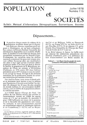 La parution chaque année du tableau de la population mondiale dréssé par le population Reference Bureau, organisme privé siégant à Washington, est un petit événement.
