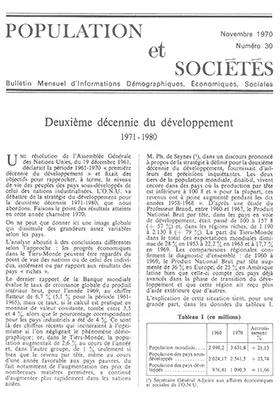 Une Résolution de l'Assemblée Générale des Nations Unies du 19 décembre 1961 déclarait la période 1961-1970 "Première décennie du développement" et fixait des objectifs pour rapprocher, à terme, le niveau de vie des peuples des pays sous-développés de celui des nations industrialisées.