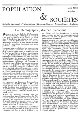 Pourquoi créer un bulletin d'informations démographiques, économiques et sociales ? C'est que le nombre et la qualité des êtres étant le fondement de n'importe quel phénomène social, la population est une donnée permanente, essentielle et trop souvent négligée de tous les problèmes économiques, de toute politique sociale.