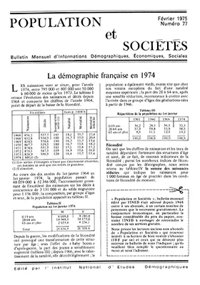 La démographie française en 1974