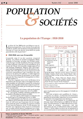 Le début de l'an 2000 incite aux bilans et aux réflexions prospectives. à mi-chemin d'une période de 100 ans, quelle a été l'évolution de la population de l'Europe au cours du dernier demi-siècle et quelle pourrait être celle du prochain ?